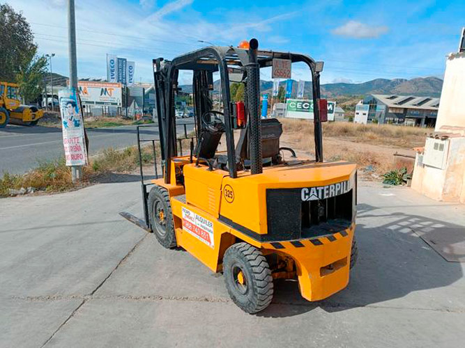 Carretilla Elevadora Diesel de 2500 Kg marca Caterpillar. en muy buen estado. Hidrostática y con desplazador. La Maquina está revisada de todo y recién pintada. Lista para trabajar, con certificado CEE y factura.